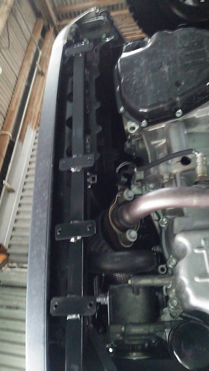前側は、こんな感じで角パイプにブラケットを作って