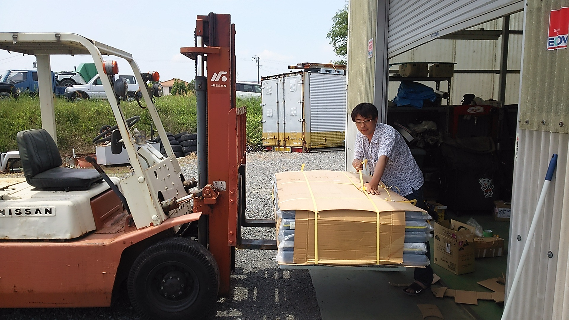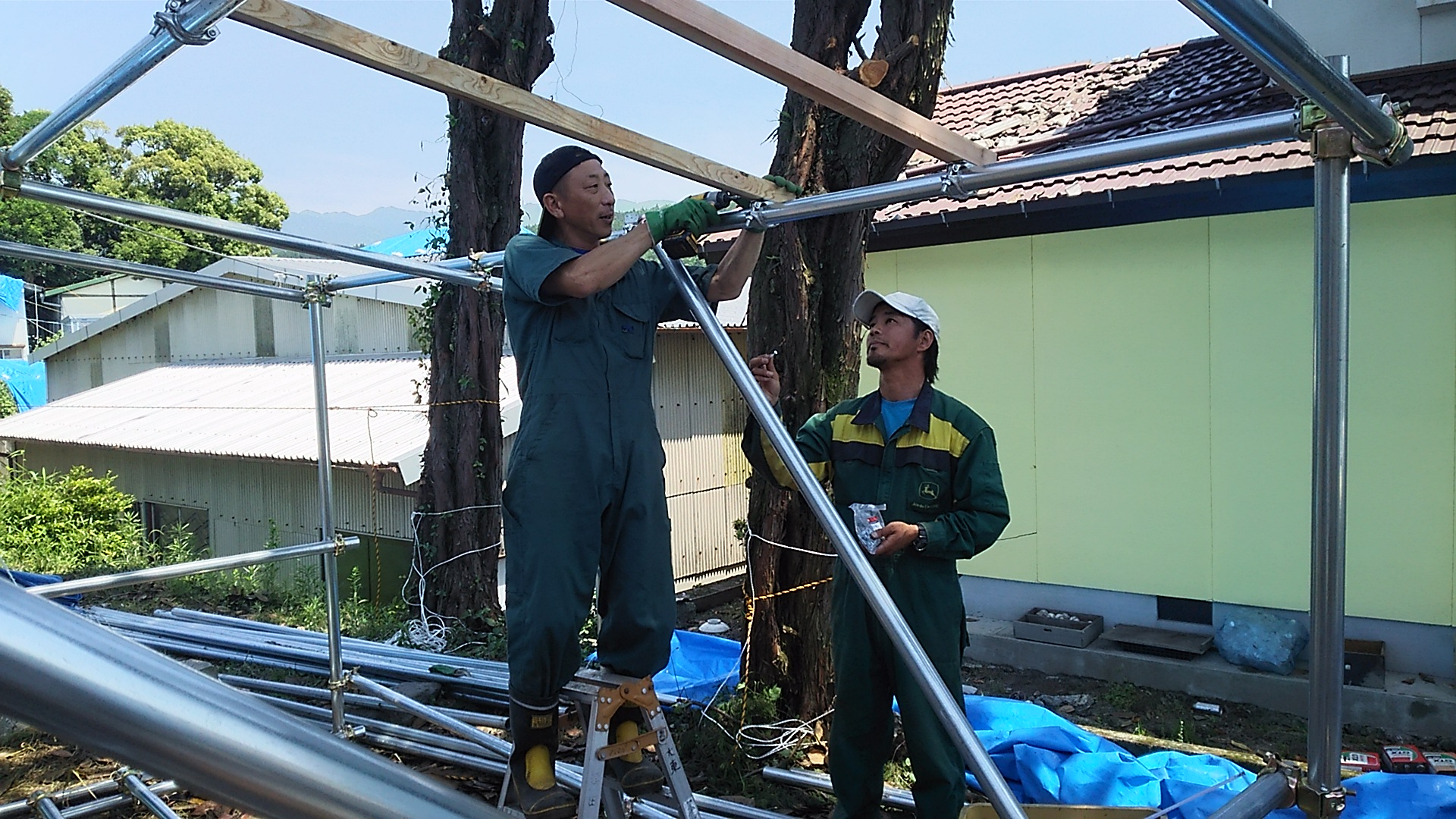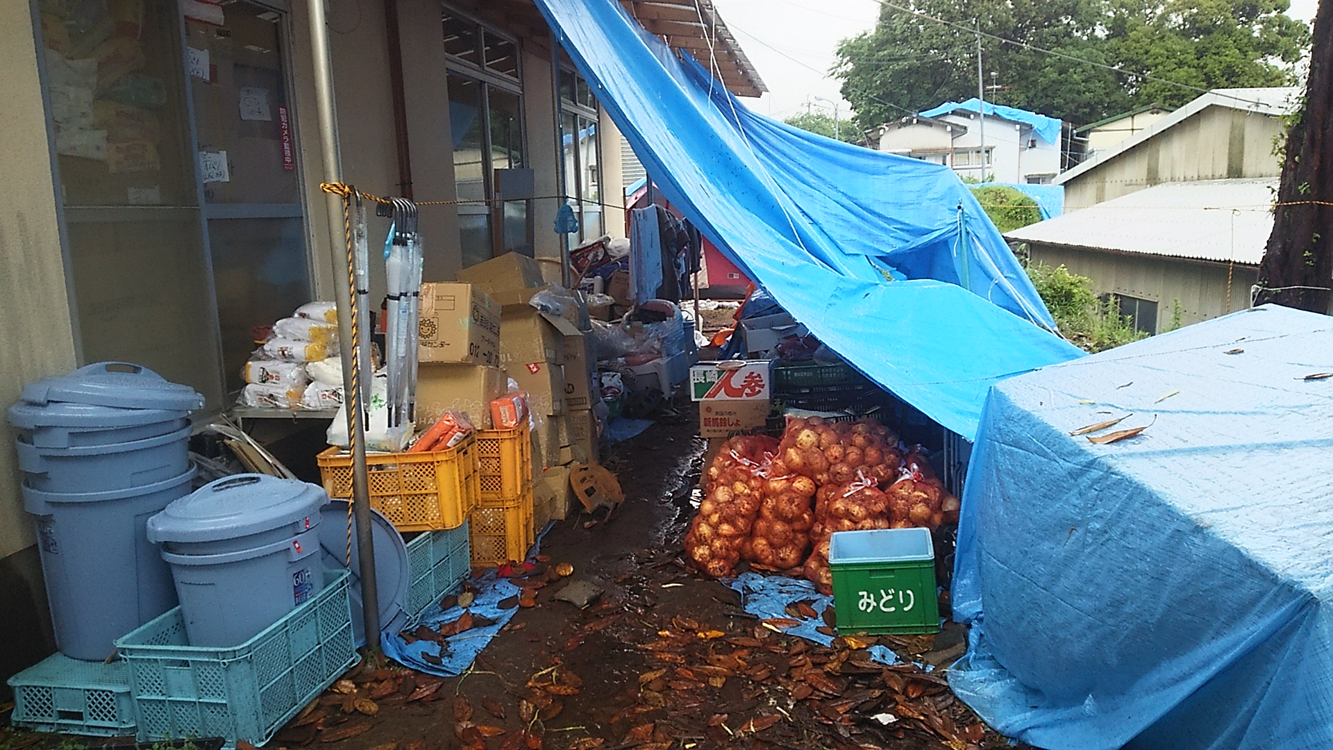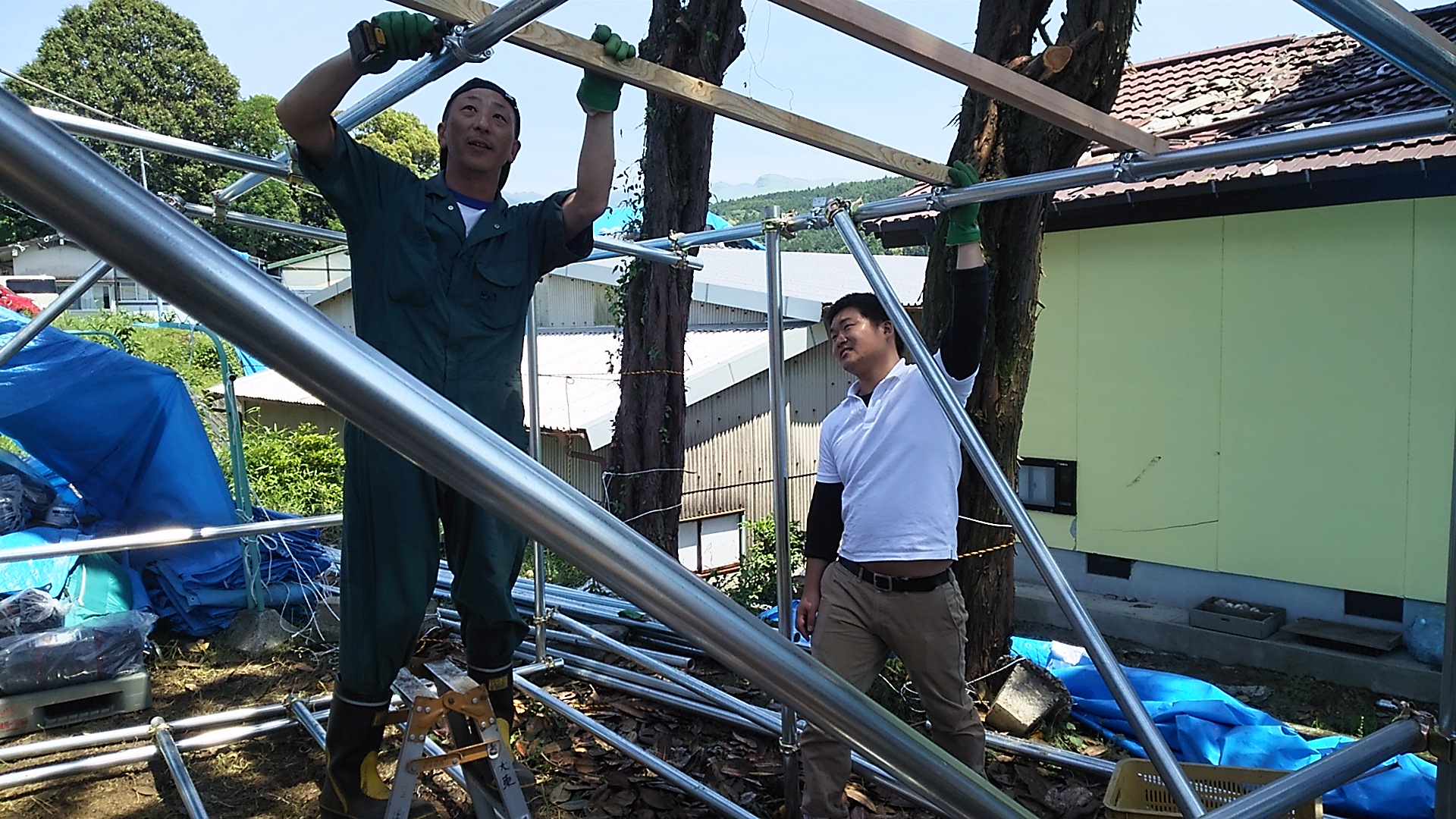 現地での作業は、支援物資の置く場所(雨の当たらないように)を作ること!