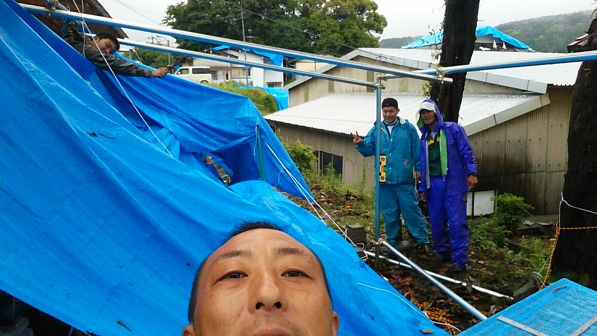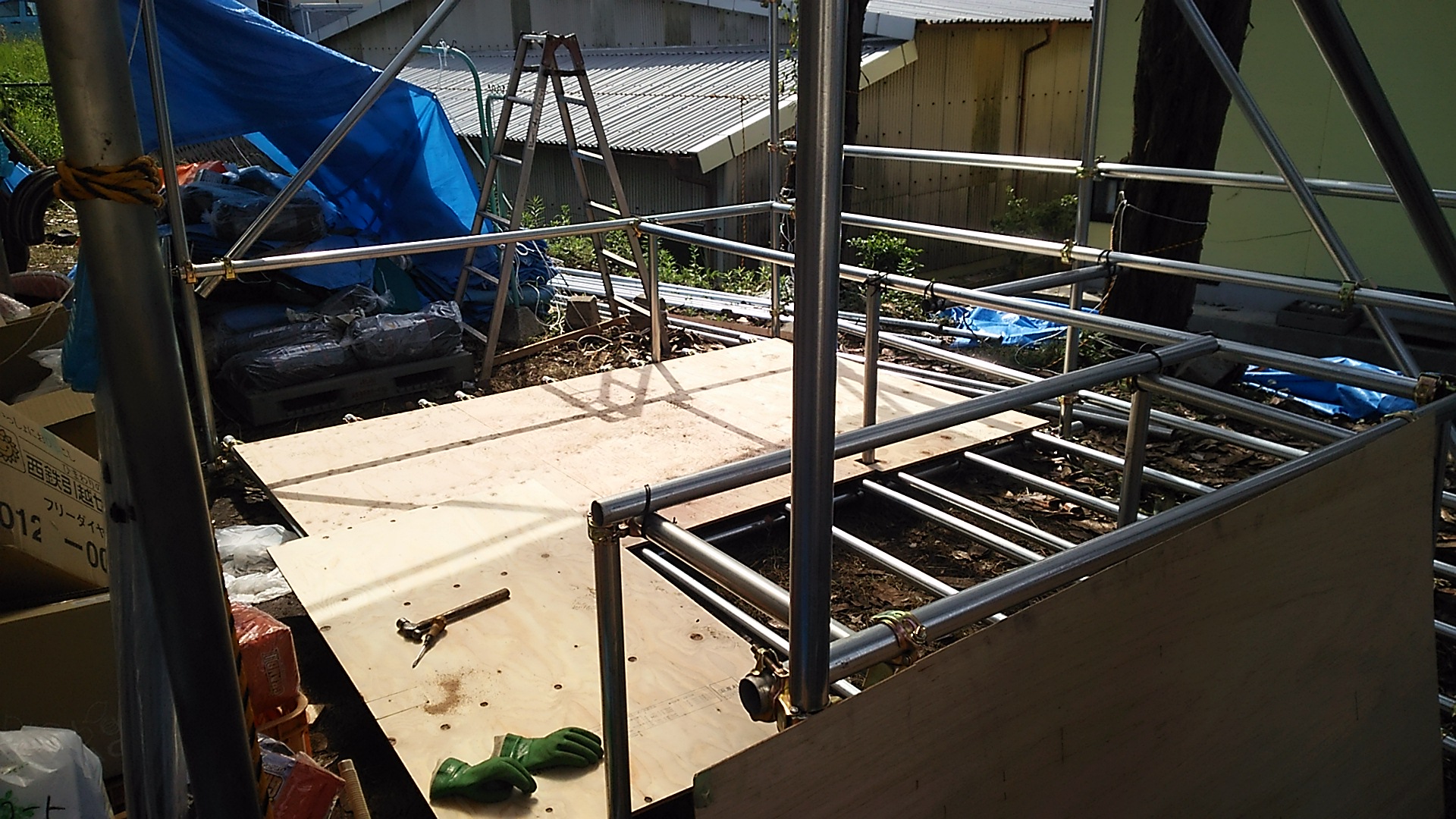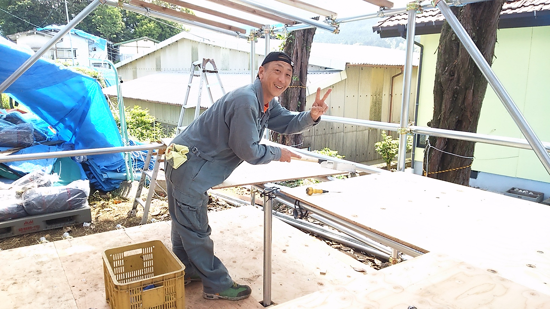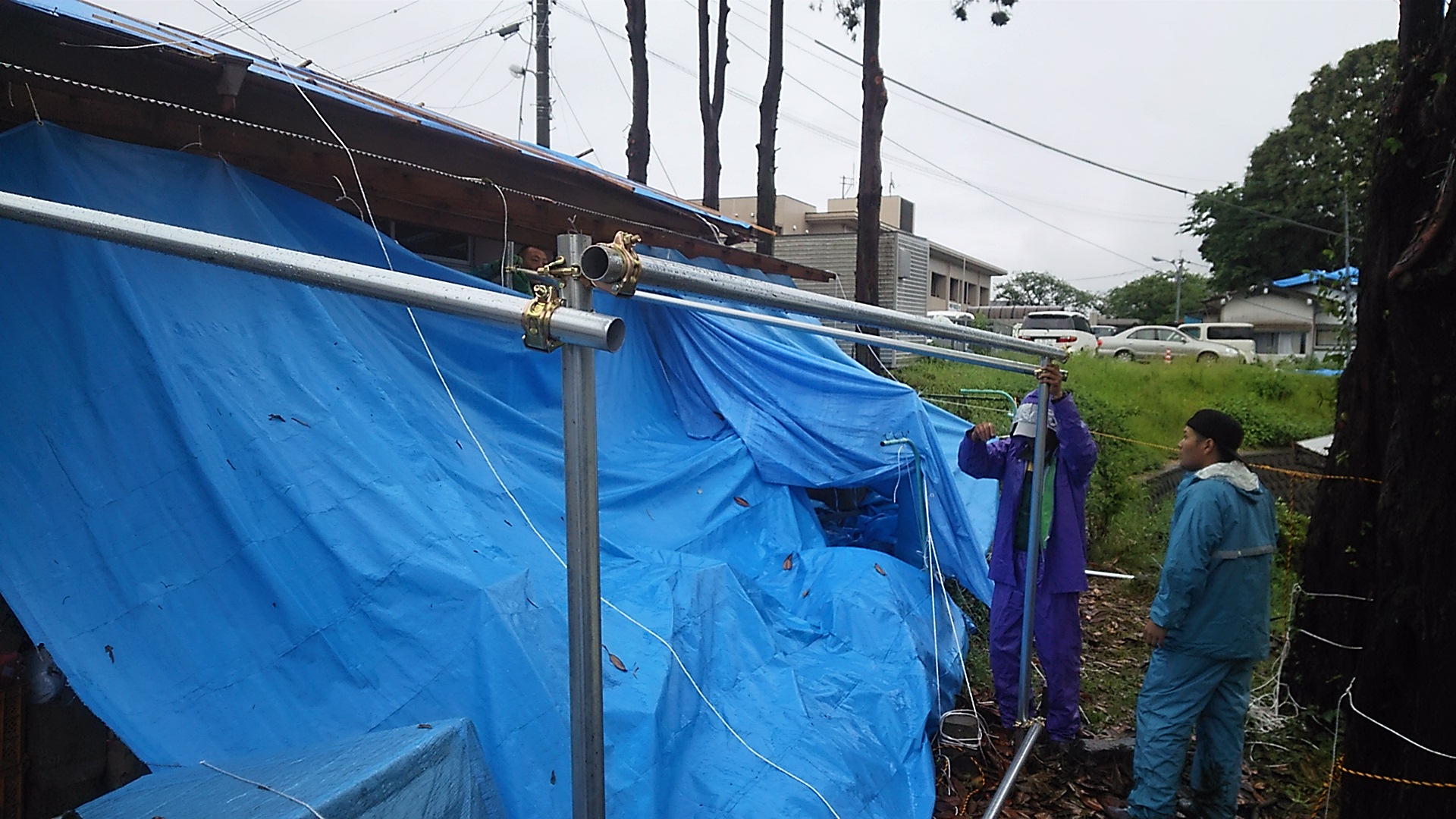 現地での作業は、支援物資の置く場所(雨の当たらないように)を作ること!
