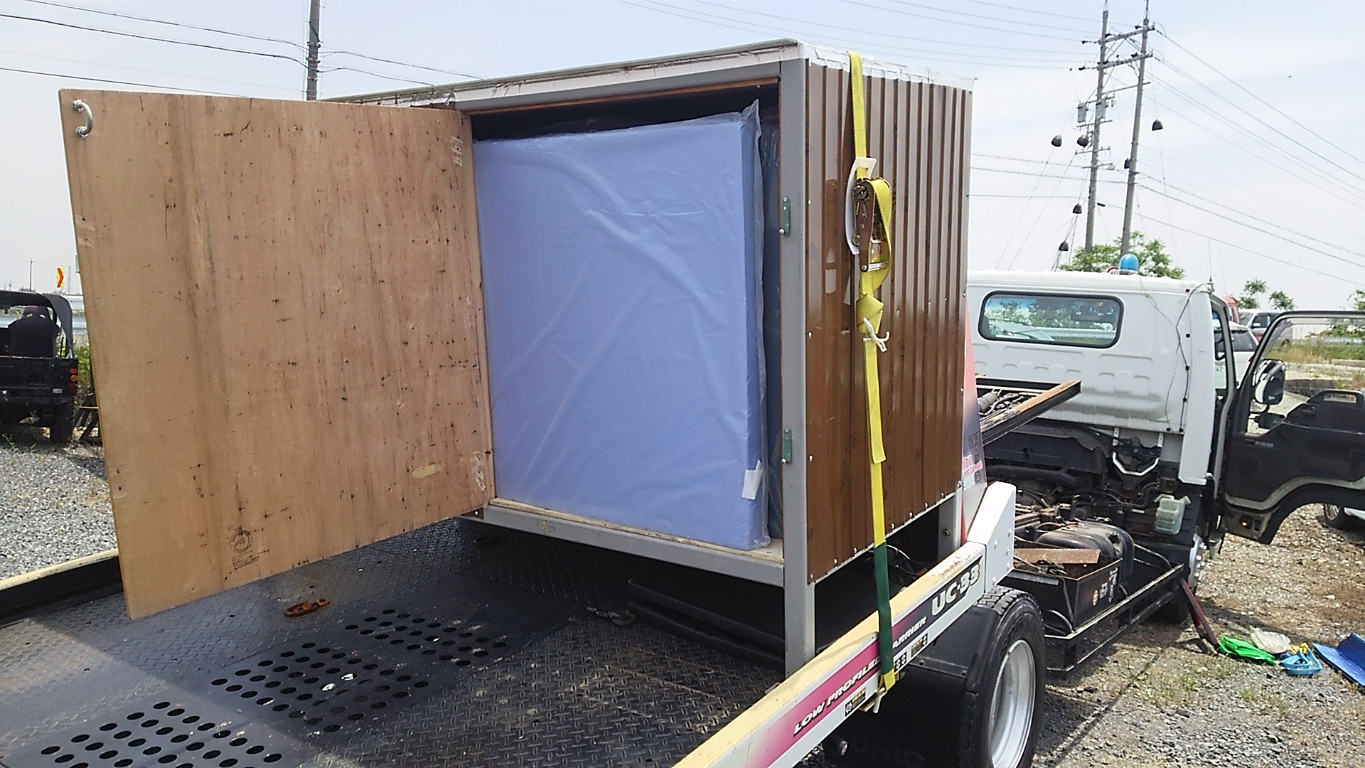 マットレス15枚を積載車に積むのに雨対策の梱包を、那須君がしてくれました♡