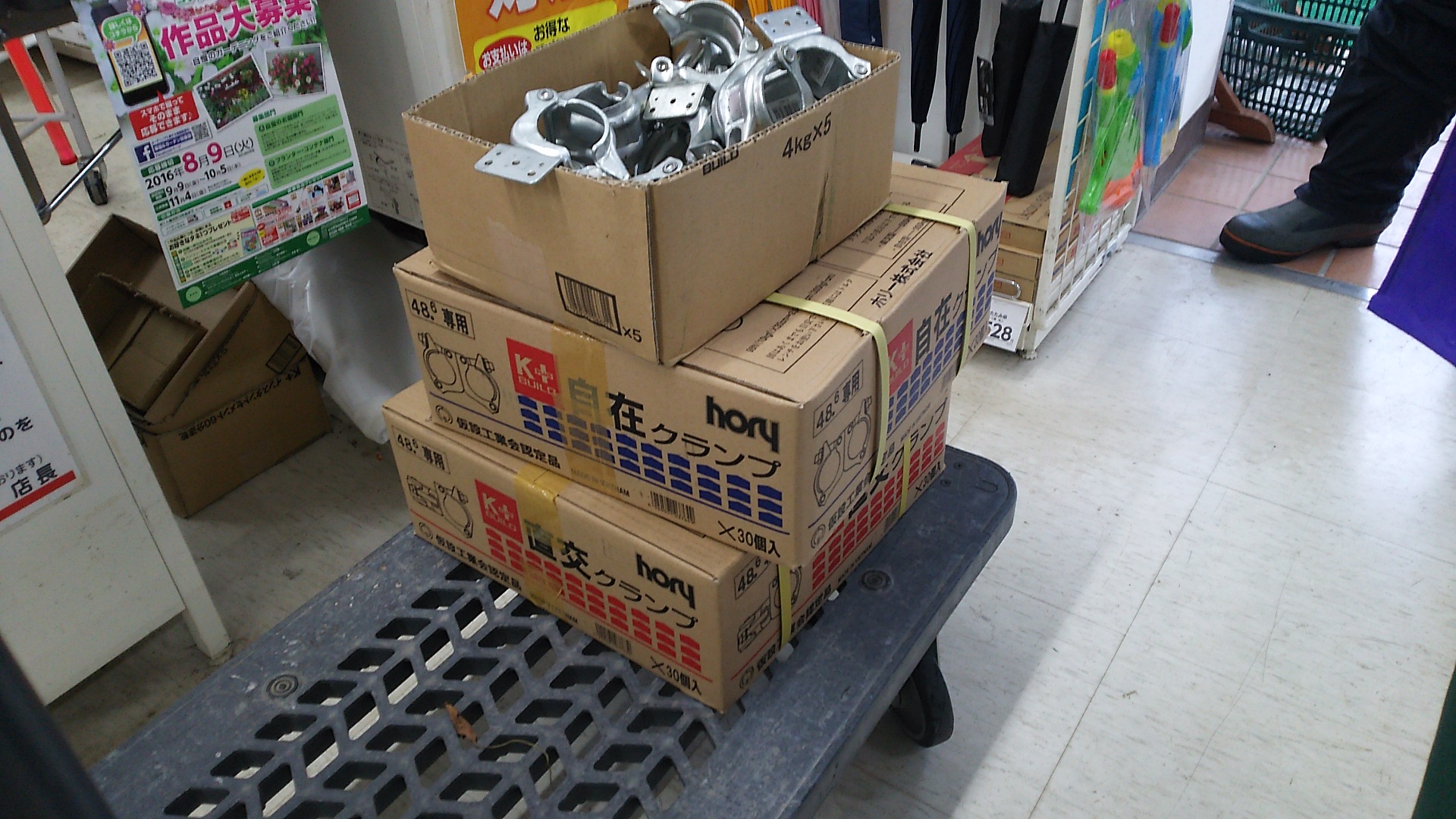 資材の調達!(パイプ40本・クランプ90個は四日市の社協さんに用意していただきました!)