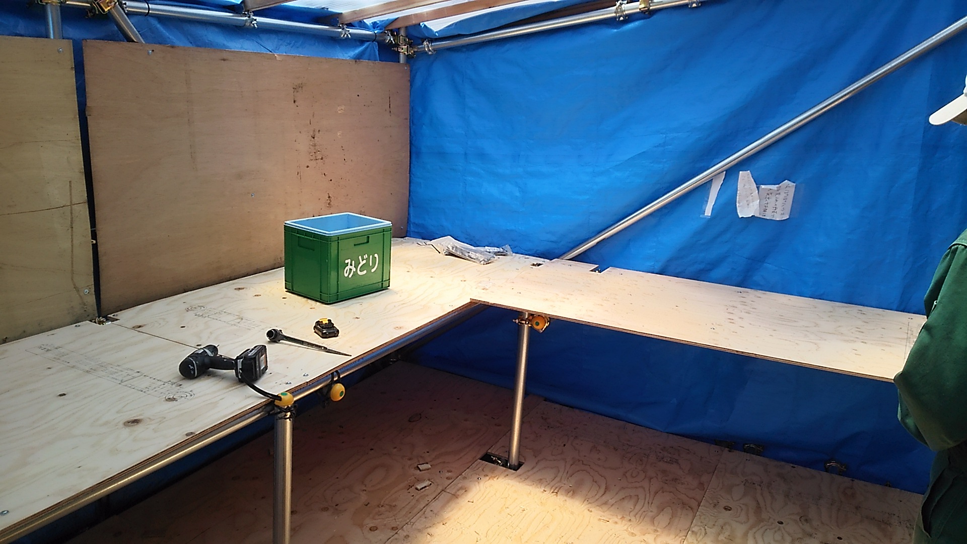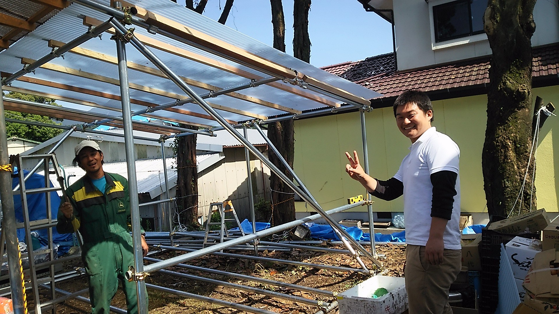 残りは、みんなで集めた義捐金で購入しました(コンパネ、屋根、ネジ、クランプなど)