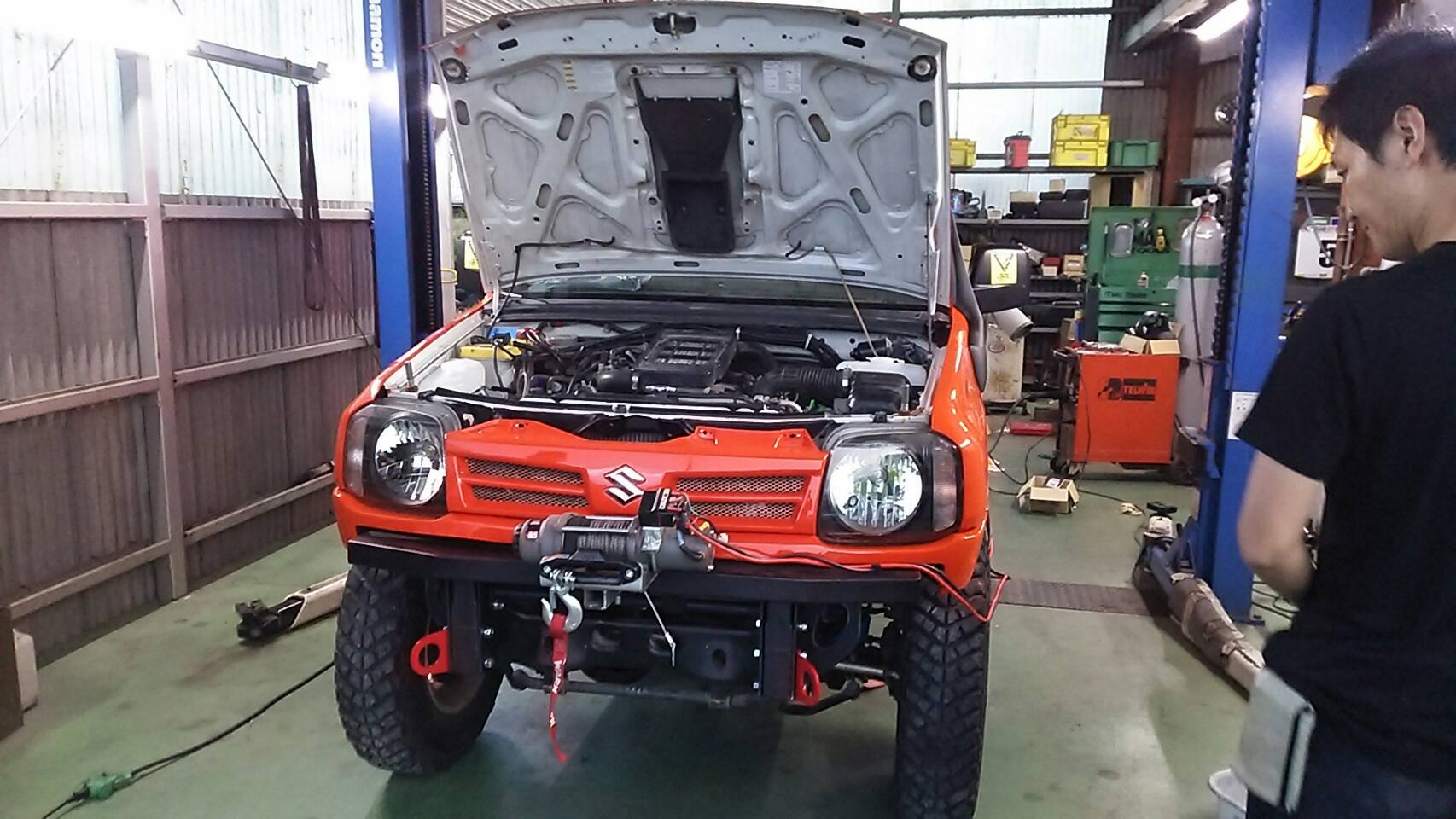 油圧ハイリフトジャッキを付けたり、ウィンチの確認!