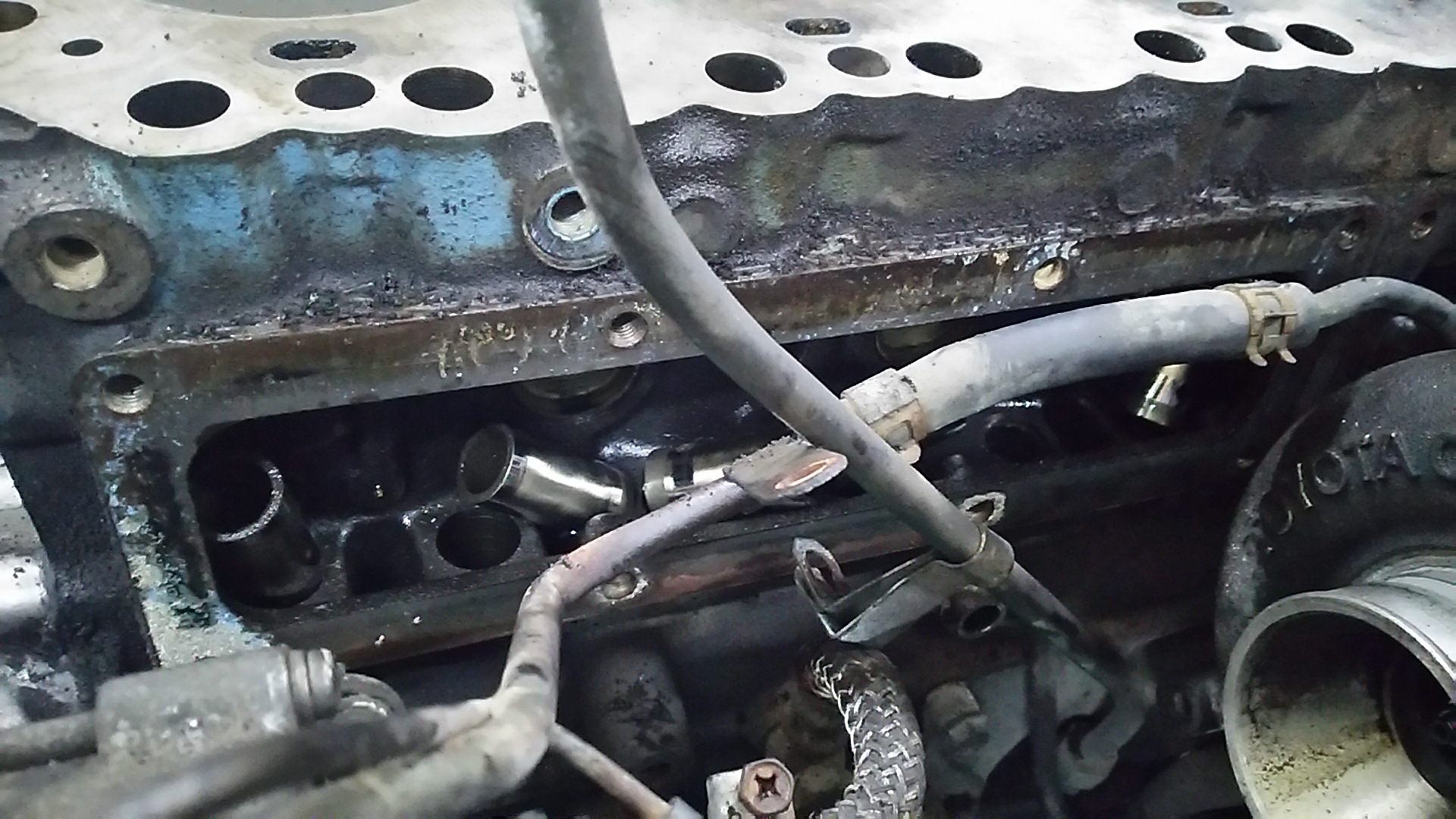ヘッドガスケットの抜けによって、水回りに圧縮漏れで