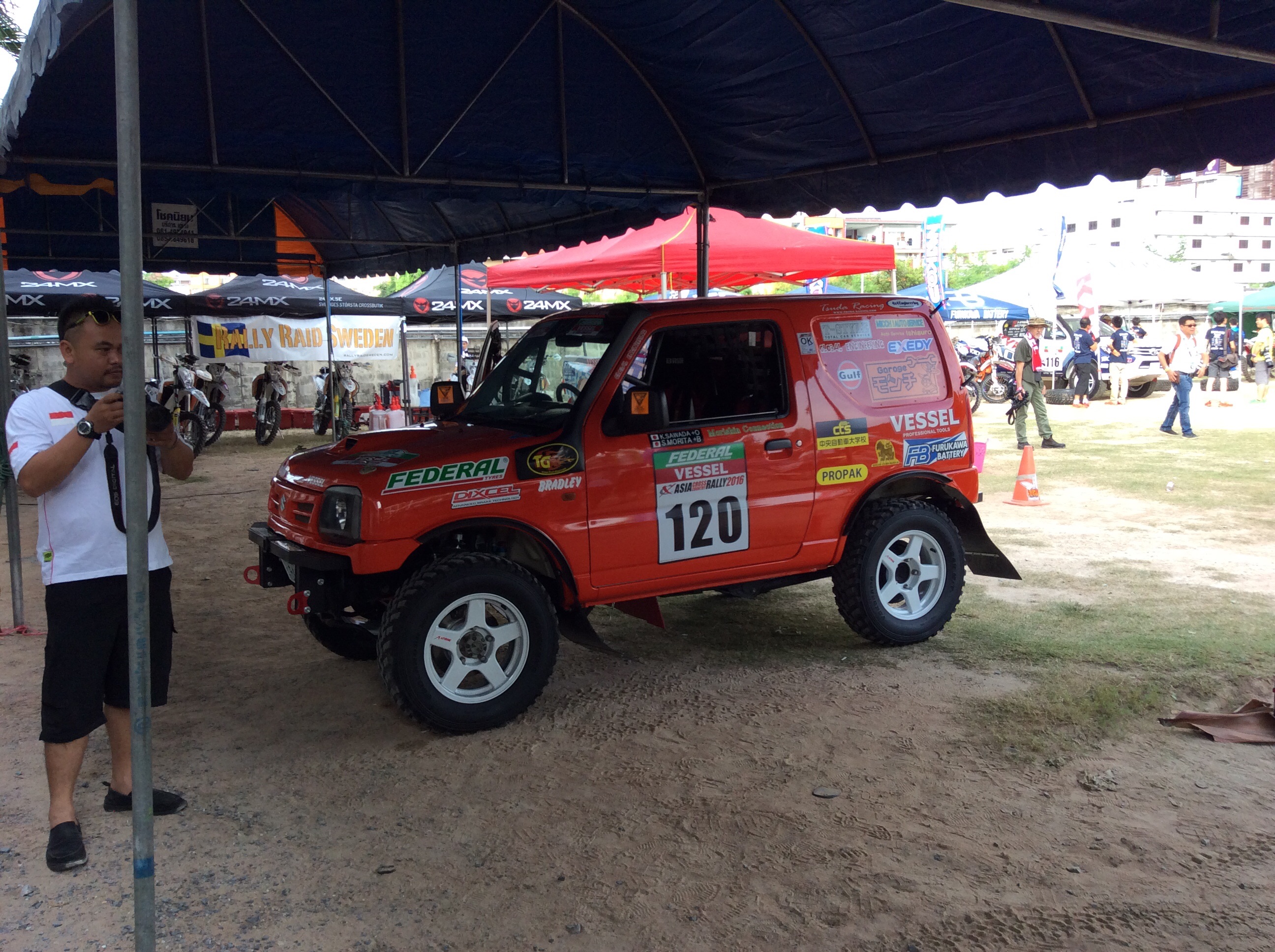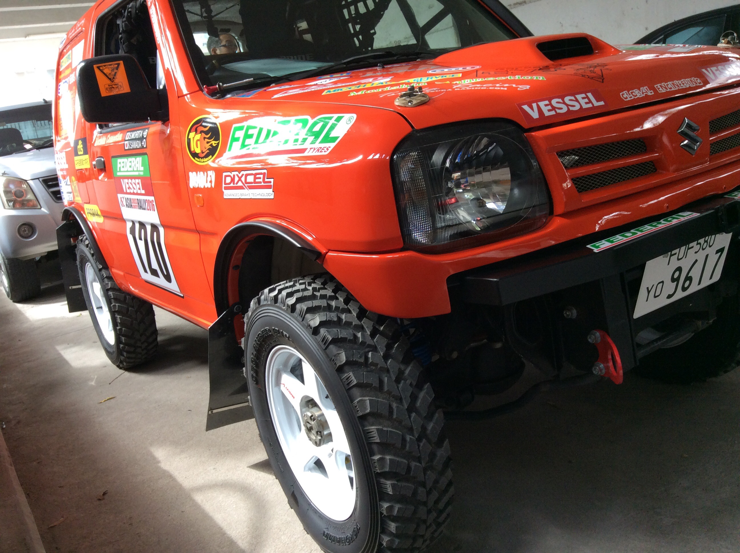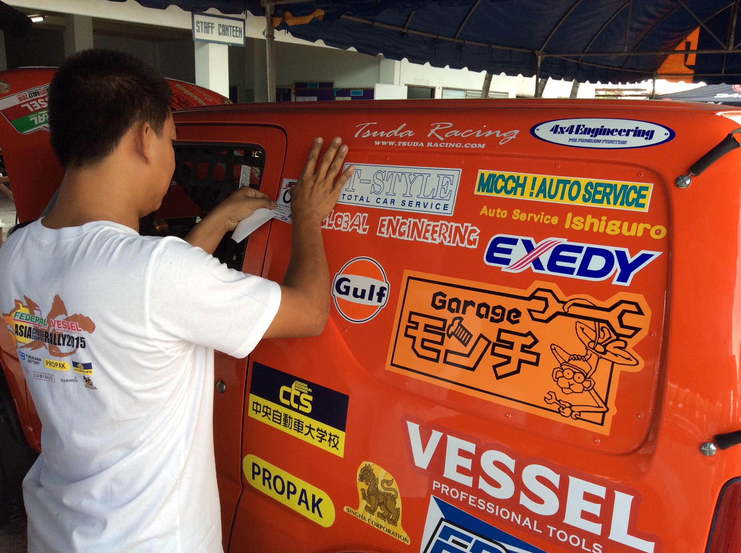 大会スポンサーのステッカーも貼り、いざ車検に!