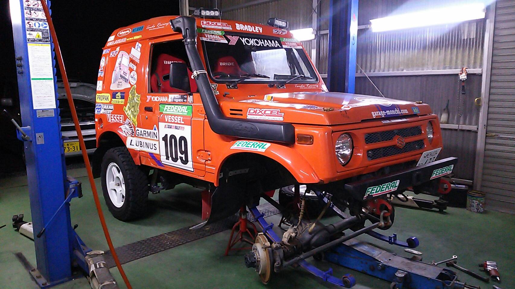 今回AXCR2017Newマシーンの為に、オレンジ号をジャッキで上げたら\(◎o◎)/!