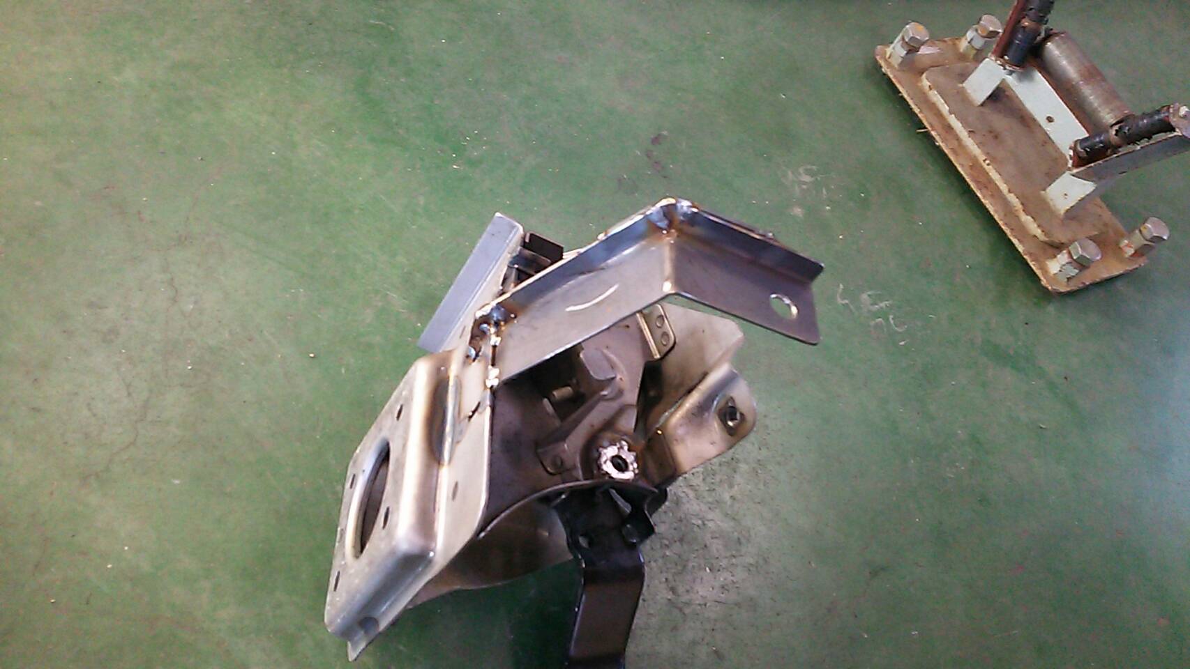 支えのブラケットを鉄板を切って曲げてくっつけて!
